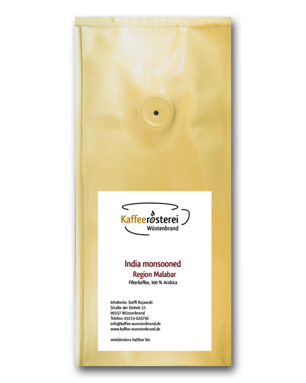 (Dies ist ein spezielles Verfahren, bei dem die Kaffeebohnen dem Monsunregen ausgesetzt werden und so unter dem Einfluss von Dauerregen ein außergewöhnlicher Geschmack entstehen kann.)